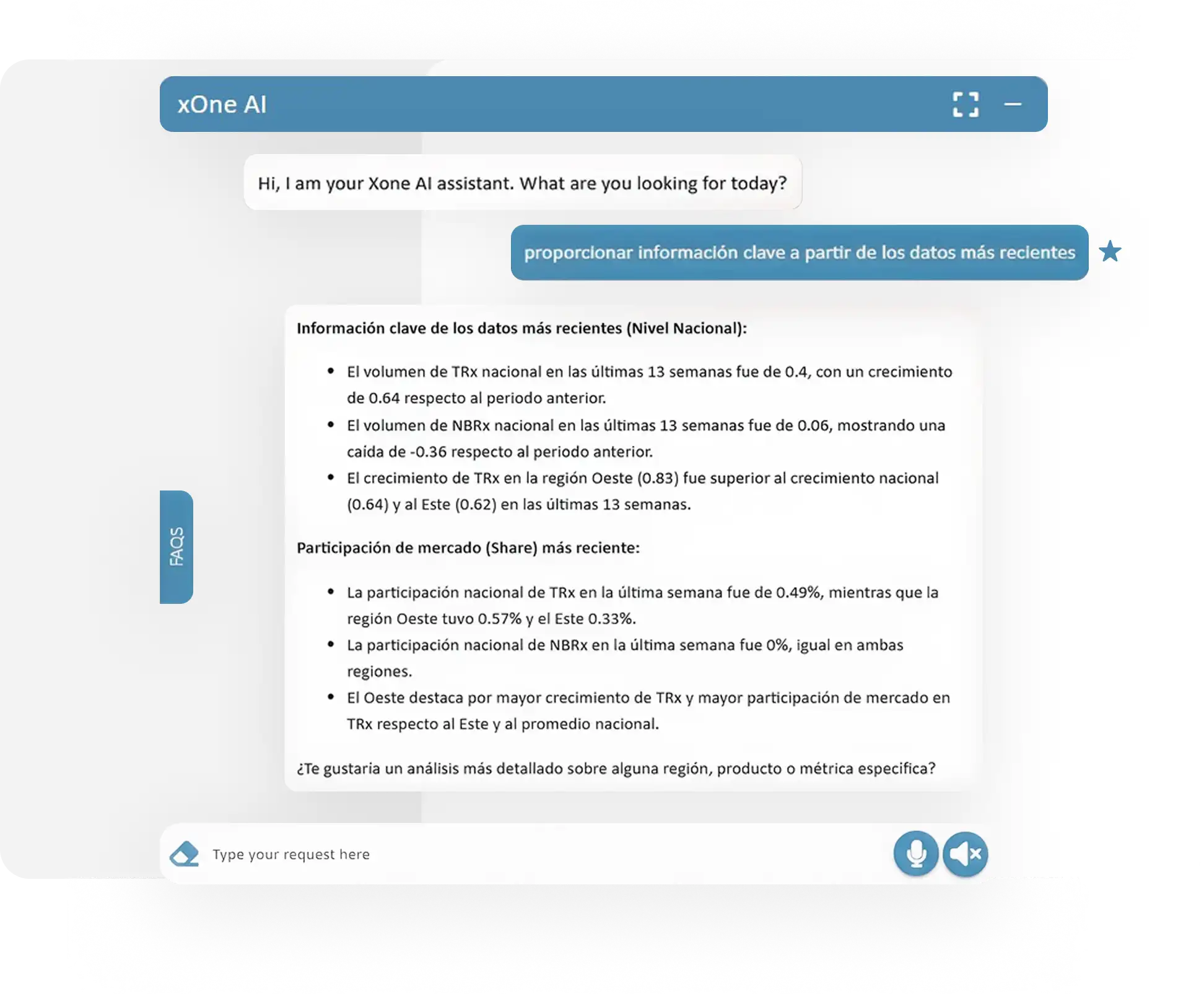 Multi-lingual, built for global pharma teams. xOne recognizes the language in the chat and responds in the same language.